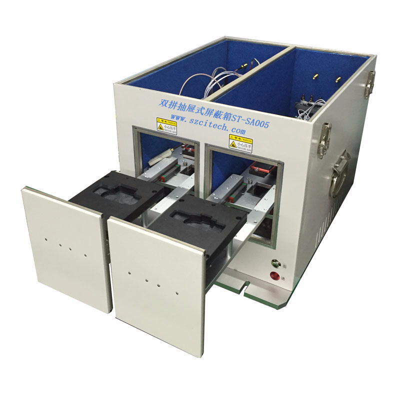 ST-SA005 RF Shielding Box provides RF isolation and signal connections necessary for mobile testing. With the RF coupling accessory and filtered control ports, it makes an ideal solution for testing mobiles and small RF devices on the test benches of R&D, service QC and manufacturing