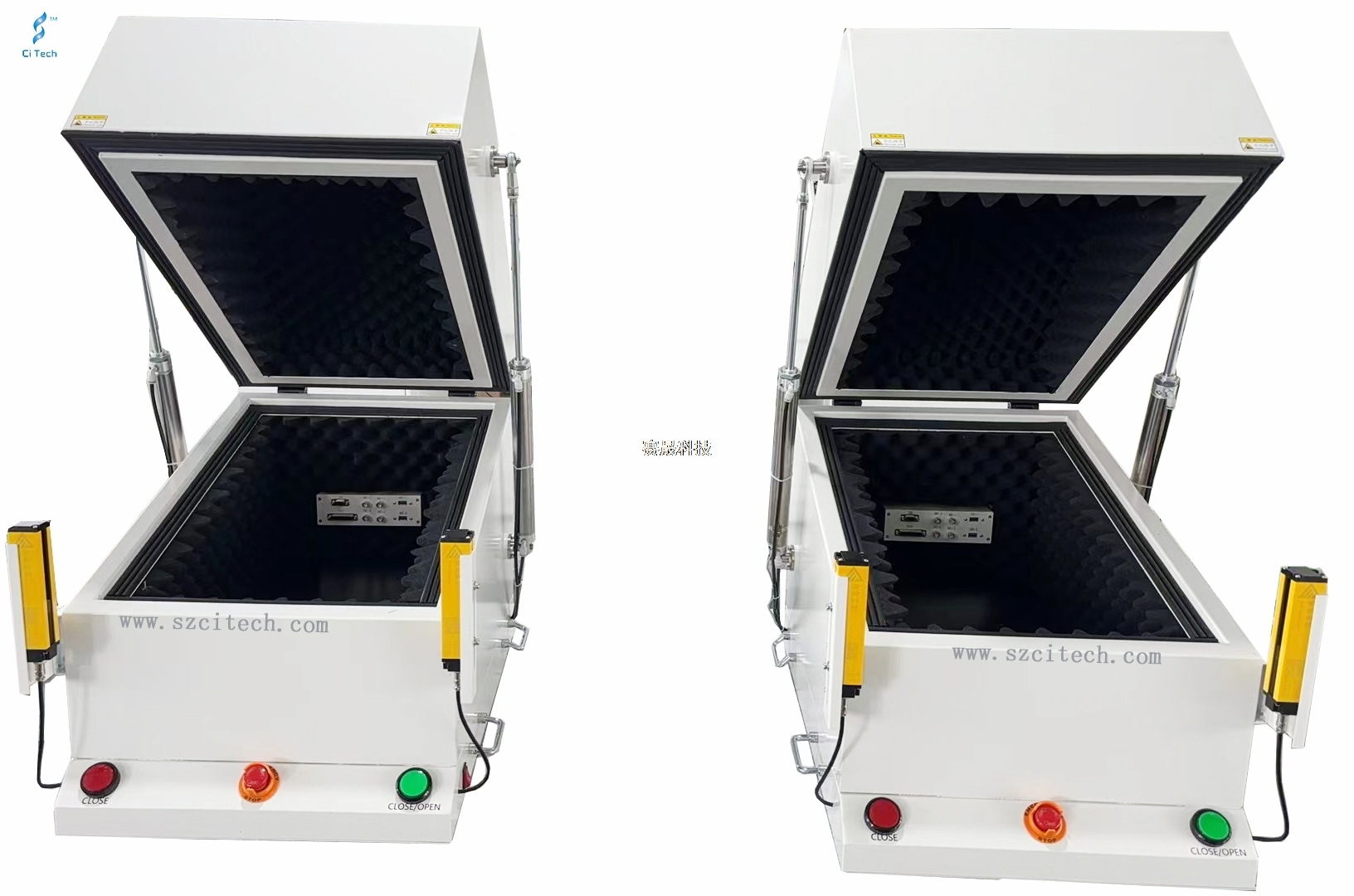 CiTech can specially provide a steady testing environment with noise floor low as 30dBA for performance testing of acoustic products, such as speaker, receiver and mic. Sound isolation can reach more than 40dB(300Hz~20kHz), Also, we can customize sound-isolated box with special size and fixture, and provide integrated testing system solutions.