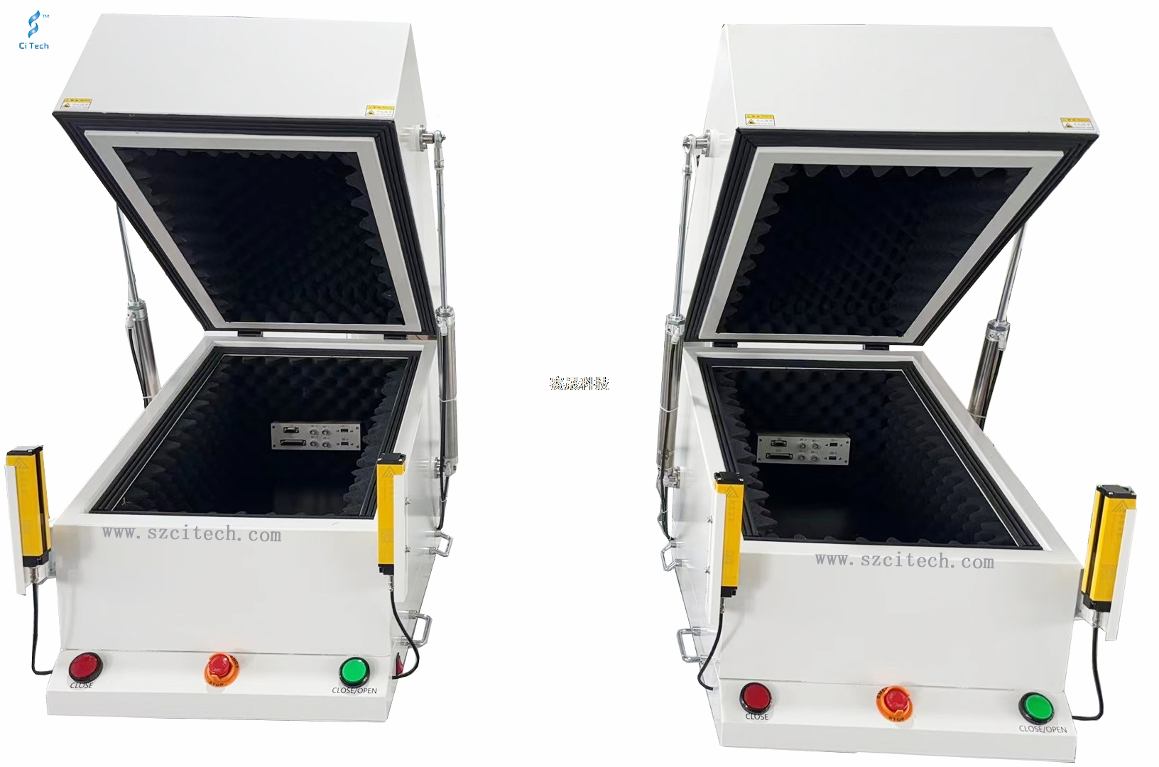 隔音箱專門為聲學產品(如喇叭、聽筒、麥克風)的性能測試提供低至30dBA底噪且穩定的測試環境,聲音隔離能力在40-80dB(300Hz~20kHz),具備良好的減震能力,可根據不同的應用需求定制隔音箱的尺寸、夾具,同時提供完整的測試系統解決方案。